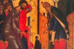 Коли Діві Марії виповнилося три роки, її благочестиві батьки приготувалися виконати свою обітницю. Вони скликали родичів, запросили ровесниць своєї дочки, одягли її в найкращий одяг і в супроводі народу, співаючи релігійні пісні, повели її в храм єрусалимський для посвячення Богу. Її подруги-ровесниці, як і Сама Марія, йшли із запаленими свічками у руках. Назустріч їм з піснеспівами виходили з храму священики на чолі із первосвящеником...