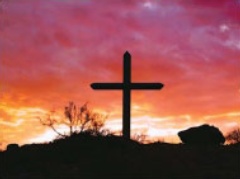 Едем дальше. Он смотрит по сторонам и вдруг начинает бурно радоваться и показывать куда-то вдаль. А там, еще довольно далеко, но уже можно разглядеть небольшую гору, и на ее вершине стоящий крест, подсвеченный снизу мощным прожектором.