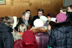 Зал, где выступал писатель, был полон — некоторые родители, несмотря на мороз, пришли на встречу с отцом Александром даже с маленькими детьми. И не ошиблись. Отец Александр сложнейшие вопросы духовной жизни умеет объяснять простым, точным, доступным языком, понятным и детям. Не случайно в конце встречи, когда стали задавать вопросы писателю, один пятилетний мальчуган из зала стал «интервьюировать» батюшку...