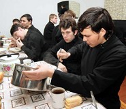 — Трудность, которая встает перед вчерашним семинаристом и сегодняшним миссионером заключается в том, что у него есть свобода выбора: какие средства следует применять для того, чтобы проповедь Христа дошла до людей, — говорит священник Сергий Яблуновский, инспектор семинарии. — Здесь очень важно не ошибиться. И особенность нашего миссионерского образования заключается в том, что мы учим студентов этой свободой выбора распоряжаться. Поэтому разрешаем всё то, что вы видите... Конечно, опасность есть всегда. И мы об этом помним. С моей точки зрения, от обмирщения нас удерживает главное — частая совместная молитва. И Причастие Святых Христовых Тайн.