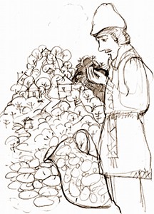 Пришёл как-то к белогорцам странный человек: росту он был очень маленького, зато на голове своей носил большую-пребольшую чёрную шапку. Хотел странный человек поселиться на Белой Горе и пришёл за разрешением к Доброму, старейшине белогорцев. А тот не зря Добрым наречён — разрешил, конечно.