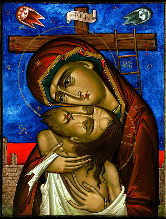 — Конечно! Сам Христос провокативен. Более того, «не провоцирующая» гладенькая икона не даёт необходимого эффекта. Я так скажу: русская икона вдохновляет на повторение, призывает к некому совершенству, византийская — вдохновляет на новую идею, провоцирует развитие. «Совершенство» — это тупик, это отсутствие развития.