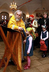 А было это так. Вечерняя служба в храме подходила к концу. Ожидавший исповеди народ собрался у левой стены. Люди тяжело вздыхали, низко склонив головы, и теребили в руках листочки с записанными для памяти грехами. Я тоже присоединилась к ним. Но как следует всё обдумать никак не могла, так как моя трёхлетняя дочка изо всех сил старалась вникнуть в смысл происходящего. Вопросы, один за одним, сыпались на меня. Срочно требовался ответ: «Почему свечки горят высоко? Чего там в руках у тёти? Почему хор не поёт, а читает, им, что, лень? Почему нельзя трясти головой, ведь так красиво всё прыгает...»