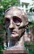 Символично, что взгляд пожилого, измученного страданиями и болезнями человека, обращен в сторону библиотеки. В этом здании — бывшей усадьбе Демидовых — в конце ХIХ-начале ХХ века помещалась 6-я мужская гимназия, где учился будущий писатель.