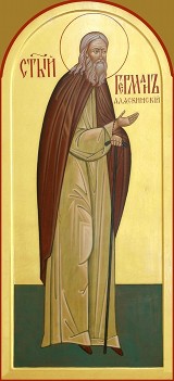Монах Герман происходил из купцов города Серпухова Московской епархии. Как он назывался до пострижения в монашество и какая была его фамилия, — неизвестно. С самых юных лет он имел великую ревность ко благочестию (с 12-ти лет жил в Сарове), и 16-ти лет от рождения пошёл в монахи. Сначала поступил он в Троице-Сергиеву пустынь, лежащую близ Финского залива, на петергофской дороге, в 15-ти вёрстах от С.-Петербурга. В то время Сергиева пустынь была приписана к Троице-Сергиевой Лавре и управлялась строителями, присылаемыми из Лавры. Вероятно, о. Герман как сосед г. Москвы, бывал в Москве и посещал Свято-Троицкую московскую Лавру; там имел случай узнать о святой отрасли св. Лавры, Троицко-Сергиевой петербургской пустыни, — и это, может быть, и было поводом к поступлению его в пустынь.