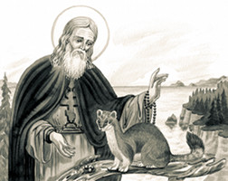 Среди Елового острова по горе сбегает в море небольшой ручеёк, у которого устье всегда омётывает буруном. Весною, когда появлялась речная рыба, Старец сгребал несколько песок в устье, чтобы было можно пройти рыбе, — и первоприблизившаяся рыба стремилась в реку. «Бывало, скажет апа, — говорит Алигьяга, — пойдёшь и достанешь рыбу в реке!» Рыбою сушёною кормил о. Герман птиц, — и они во множестве прилетали к его келье. Под кельей у него жили горностаи. Этот маленький зверёк, когда ощенится, недоступен, а старец кормил их из рук. «Не чудо ли мы это видели!» — говорит его ученик Игнатий. Видели также, что о. Герман кормил медведей. Со смертью Старца и птицы, и звери удалились; даже огород его не даёт такого урожая, если кто самовольно держит его, утверждает Игнатий.