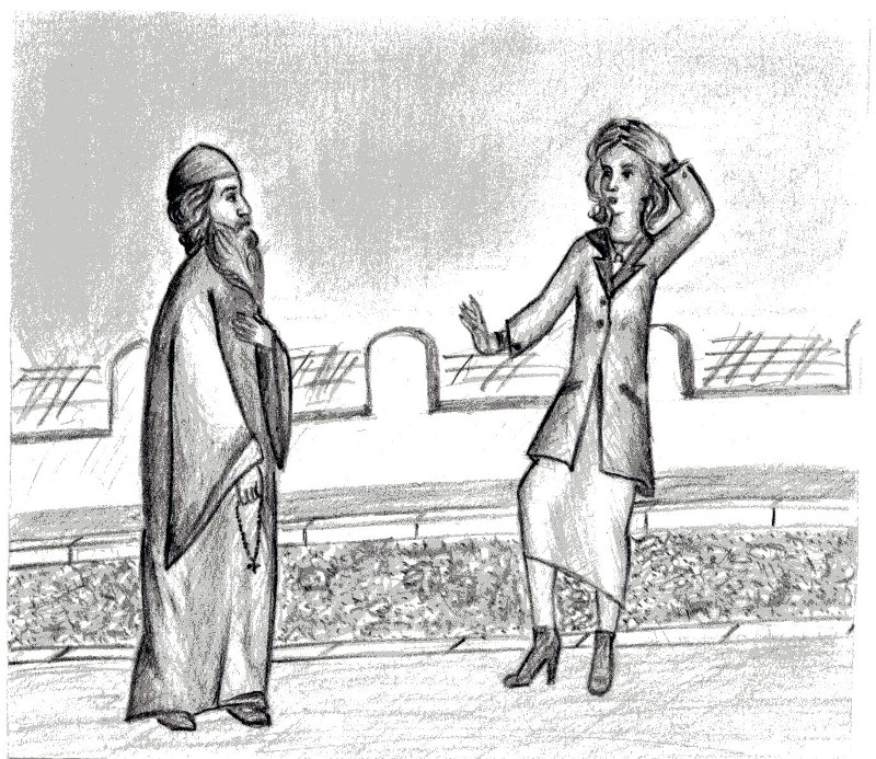 — Ничего!!! — гневно выкрикнула женщина. — Неужели вы не знаете, что встреча с попом не приносит удачи, а у меня сегодня должно решаться очень важное дело. Зачем вы здесь появились?!