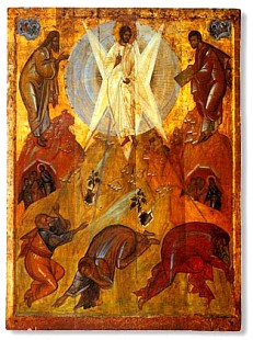 Своими корнями иконография Преображения уходит в далекую древность, когда большую роль играли символические формы представления библейских сюжетов. Покровский приводит в качестве первого хронологически определенного примера мозаики Св. Аполлинария в Равенне (St. Apollinare in Classe). В VI же столетии произошел переход от символических форм изображения к прямым, и в мозаике церкви Святой Екатерины на Синае мы уже видим все фигуры, изображение которых в дальнейшем закрепится в каноническом представлении сюжета: Спаситель, по сторонам которого стоят Моисей и Илия, и три павших ниц апостола внизу.