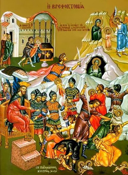 «Глас в Раме слышен, плач, и рыдание, и вопль мног. Рахиль плачет о детях своих и не хочет утешиться, ибо их нет». Вы знаете, когда это было. По повелению Ирода воины вырезали в Вифлееме и его окрестностях тысячи младенцев от двух лет и младше, по времени, которое Ирод выведал от волхвов. Эти младенцы стали первыми мучениками за Христа. Каждый год в неделю по Рождестве святая Церковь чтит их память.Это страшное событие невозможно представить без содрогания. Горько видеть страдания и кровь младенцев, больно слышать рыдания и слёзы матерей. Но Ирод бесчеловечный! Он во аде читает описание этого события. И вечно будет читать его там. Вечно будут ему видеться кровь и слёзы младенцев. Вечно будут ему слышаться вопли матерей. Вечно будет он мучиться ими, вечно будет страдать от них. Пока мы не видим, не хотим видеть, как от нас плачут другие. Но время придёт. С воскресением в жизнь оживут твои злые дела в твоей совести. Тогда увидишь слёзы тобой утеснённых, услышишь плачь тобой опечаленных. И будут жечь тебя эти слёзы огнём неугасимым. И будет точить тебя этот плачь червём неусыпающим. Не здесь, но там, за пределами гроба, там, где глас в Раме некогда слышанный, вечно будет слышаться бесчеловечному Ироду.