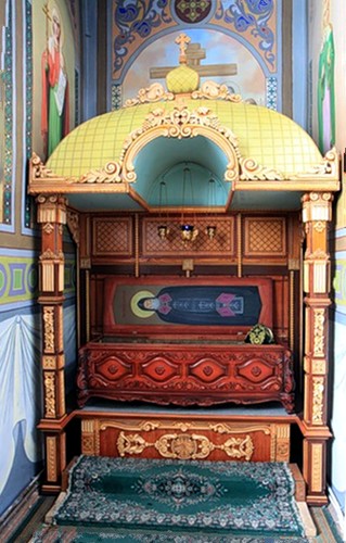 Отец Алексий принес с собой антиминс и комплектный походной храм со складным иконостасом, написанным на полотне и иные священные принадлежности; они перенесены были на плечах через венгерскую границу, тайно от врагов православной веры.