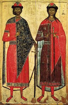 Князья Борис и Глеб были первыми святыми канонизованными русской церковью. Они не были первыми святыми русской земли. Позже их, в разное время, Церковь стала чтить варягов Феодора и Иоанна, мучеников за веру, погибших при Владимире — язычнике, княгиню Ольгу и князя Владимира, как равноапостольных просветителей Руси. Но святые Борис и Глеб были первыми венчанными избранниками русской Церкви, первыми чудотворцами ее и признанными небесными молитвенниками «за новые люди христианские». Как говорит одно их житие, они «отняли поношение от сынов русских», столь долго косневших в язычестве. Вместе с тем их почитание сразу устанавливается, как всенародное, упреждая церковную канонизацию. Более того, канонизация эта была произведена, несомненно, не по почину высшей иерархии, т.е. греков — митрополитов[1], питавших какие — то сомнения в святости новых чудотворцев. Уже после рассказа князя Ярослава о первых чудесах, митрополит Иоанн был «преужасен и в усумнении». Тем не менее именно этот Иоанн перенес нетленные тела князей в новую церковь, установил им праздник (24 июля) и сам составил им службу (1020 и 1039 г.). Со времени убиения князей (1015 г.) прошло так мало лет, а сомнения греков были так упорны, что еще в 1072 г., при новом перенесении их мощей, митрополит Георгий «бе не верствуя, яко свята блаженая». Нужна была твердая вера русских людей в своих новых святых, чтобы преодолеть все канонические сомнения и сопротивление греков, вообще не склонных поощрять религиозный национализм новокрещенного народа.