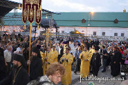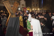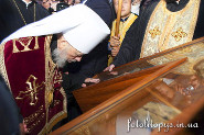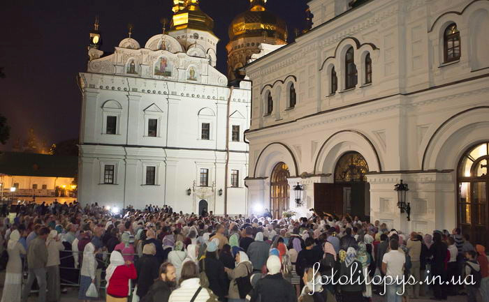 Хрест було перенесено в Трапезний храм в ім'я преподобних Антонія і Феодосія Печерських, де Святіший Патріарх Кирил та Блаженніший Митрополит Володимир відслужили молебень.