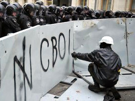 И там операция «Революция» началась с мирных демонстраций, которые постепенно перешли в открытые вооруженные столкновения с полицией. И в Дамаске фонды Рокфеллера платили демонстрантам в соответствии с тем, кто сколько ранил полицейских или поджег полицейских машин. Точно так же сейчас выглядят хорошо подготовленные «военизированные части» в шлемах, нападающие на полицейских Киева, используя цепи, металлические прутья и спреи. И все это — с нескрываемой целью спровоцировать полицию на жесткие действия, которые затем можно использовать для пропаганды и развязывания еще большего «революционного ада» на улицах. Постоянно одно и то же. И постоянно эффективно.