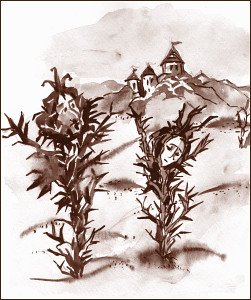 Тут он вспомнил ужасное пророчество о собственном превращении в колючку. Но, взглянув на себя, Принц утешился. Он был все тем же Принцем! Далеко впереди виднелись знакомые очертания замка... Принц попытался сделать шаг, но не смог. Он словно прирос к этой пустынной почве. Страшная догадка пронзила сердце. Принц вновь посмотрел на свои ноги и увидел тонкий и колючий стебель колючки. А вокруг снова был только песок, горячий и недружелюбный. Рядом, правда, росла еще одна до боли знакомая колючка...