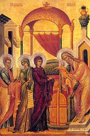 Ветхозаветный храм отверз пред Нею и Богомладенцем свои светлые входы и приготовил Им дары Боголепной хвалы[6].