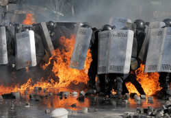 Итак, Львов превратился в полноценный Бенгази. Захвачены здания областной администрации, прокуратуры и областного МВД, раскурочено и горит здание СБУ, «группой лиц численностью около 2000 человек» блокирована и атакована база одной из частей внутренних войск (30 солдат ранены, из них пятеро — тяжело). На данный момент территория воинской части уже захвачена боевиками и частично горит. После переговоров с высоким военным начальством солдатам разрешили покинуть базу, сдав боевикам вся амуницию (щиты, каски, бронежилеты, спецсредства), а расположенный неподалёку оружейный склад опечатан и сейчас, во исполнение договорённости, взят под охрану «смешанными» патрулями из солдат ВВ и боевиков.