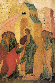 Второе, о чем говорит нам сегодняшнее Евангелие, это о даре прощения наших грехов. Что значат раны на теле Христа воскресшего? В первый вечер Своего воскресения Господь, явившись апостолам, дарует им таинство Своего действия в мире, кроме Евхаристии, которая была установлена накануне Его Крестных Страданий, — таинство покаяния. «Приимите Духа Святого, кому отпустятся грехи, отпустятся им, и кому держите, держатся». В Символе веры мы исповедуем нашу веру «во едино крещение во оставление грехов, и в Духа Святаго Господа животворящаго», подающего жизнь Божественную нам. ВДуха Святого, Того, Кто воскресил Христа из мертвых. Это Божественное дыхание дается в воскресный день, в день Воскресения ученикам. То, что совершает Христос, вязать и решить, даруется Церкви.