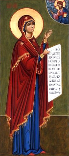 Еще в 1155 году святой благоверный князь Андрей Боголюбский покинул киевский Вышгород, чтобы перенести в свой удел и утвердить великокняжеский престол на суздальских землях; взял он с собою и чудотворный образ Царицы Небесной. Когда князь подъехал к Владимиру на расстояние семи верст, кони, везшие повозку с чудотворной иконой, замерли как вкопанные. Благочестивый князь узрел в этом знамение и дал обет устроить на том месте обитель во имя Пречистой. Помолившись, он был удостоен видения Богородицы, в правой руке державшей свиток, а левую простершей к Сыну Своему.