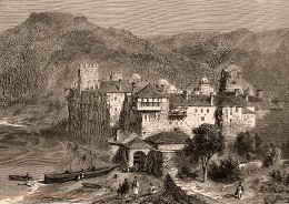 Именно здесь, по преданию, принял постриг родоначальник древнерусского монашества, выходец из Черниговской земли преподобный Антоний Печерский, а позже отсюда, по благословению старцев обители, перенес афонский устав и на Русь, основав по афонскому образцу Киево-Печерскую обитель, которая стала центром и школой древнерусского монашества и просвещения для всей Руси. «Господи, да будет на месте сем благословение Святой Афонской Горы и молитва моего отца, который постриг меня», — изрек преподобный Антоний на месте основания Киево-Печерской обители.