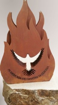 Памятник, изготовленный местными ремесленниками по эскизу писателя российского происхождения Николая Лилина, живущего в Италии, представляет собой костер со стилизованным голубем, символом мира и благополучия. На постаменте лаконично написано: «В память о мучениках Одессы».