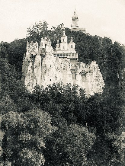 Иногда выходил он ночною порою на возвышенный горный балкон, образовавшийся в уступе Святогорской скалы, невдалеке от его келии, чтобы освежиться вдыханием чистаго воздуха; сюда иногда, когда бывало малолюдно в обители, выходил он и днем, принимал некоторых из братии, приходивших к нему для беседы духовной.
