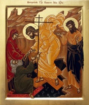 Теперь вкратце вспомним главные события, связанные с воскресением Спасителя. Как повествуют евангелисты, Господь Иисус Христос умер на кресте в пятницу, около трех часов после обеда, накануне еврейской Пасхи. В тот же день вечером Иосиф Аримафейский, человек богатый и благочестивый, вместе с Никодимом сняли с креста тело Иисуса, помазали его благовонными веществами, обвили полотном («плащаницей»), как полагалось по еврейским традициям, и похоронили в каменной пещере. Эту пещеру Иосиф высек в скале для собственного погребения, но из любви к Иисусу уступил ее Ему. Эта пещера находилась в саду Иосифа, рядом с Голгофой, где распяли Христа. Иосиф и Никодим были членами Синедриона (верховного иудейского суда) и одновременно тайными учениками Христа. Вход в пещеру, где они погребли тело Иисуса, они заложили большим камнем. Погребение совершалось поспешно и не по всем правилам, так как в этот вечер начинался праздник иудейской Пасхи.