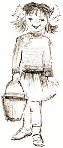 В одной деревне был сад, а в саду — колодец. В щёлочке этого деревянного колодца жил Сверчок. Каждое утро к колодцу приходила девочка с синим ведром. «Здравствуй, Девочка!» — говорил ей Сверчок. — «Здравствуй, Сверчок», — отвечала Девочка. Всякий раз, когда синее ведёрко было уже наполнено водой и в нём плескалось солнышко, Сверчок застенчиво просил: «Спой, пожалуйста, свою песенку». Девочка никогда не отказывалась, хотя немного смущалась: песенка была совсем простой, даже песенкой не назовёшь: «Я иду домой — ля-ля-ля-ля-ля, я иду с водой, ля-ля-ля-ля-ля!» Но Сверчку очень нравился серебристый и весёлый голосок Девочки.