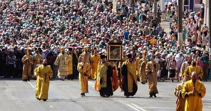 Всеукраинский Крестный ход сопровождали чудотворные иконы. Главной святыней восточной колонны стала Святогорская икона Пресвятой Богородицы, западной — Почаевский образ Божией Матери.