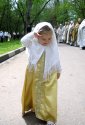 Опознать в толпе большого города обычную прихожанку — дело несложное, но, увы, не по радостному лицу и доброму приветливому отношению мы узнаем ее. На голове неопределенного цвета платок. Юбка волочится по асфальту. Черная. Бесформенная. Часто бархатная, что ясно по только этому материалу присущим потертостям. Сношенные ботинки. Ну и хит любого сезона — его величество рюкзак! Если на нем провести миниархеологические раскопки (можно воспользоваться лезвием), вам повезет найти надпись «Олимпиада — 80!», на худой конец — «Голосуй сердцем!»...