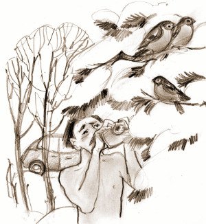 Снегири сидели на фоне скучного зимнего леса, и им не было дела до того, что их наряд не гармонирует с окружающим пейзажем… Они были яркими и праздничными, словно неожиданные мазки красной гуаши. Птицы не приспосабливались к окружению, не пытались в нем спрятаться. Семен попятился и опрометью кинулся назад к машине за фотоаппаратом. Забыв про одышку, вернулся со своим цифровиком и, как был в одних трусах, полез по сугробам к дереву с яркими птицами. Стеклянистая кромка жесткого наста царапала, а холод обжигал кожу. Это — пустяки, главное — птицы. Те и не собирались улетать, спокойно наблюдали за человеком.