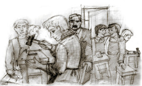 У меня от этих слов всё так внутри и перевернулось. Словно бы это я сам деньги у братца вынул. Засобирался я тут спешно, распрощался и домой. В спешке даже письмецо братцу от матери передать забыл. И, удивительное дело, каждый раз, когда с ним встречался, после того случая, даже если в лицо ему не смотрел, а ведь почти никогда и не смотрел, казалось мне, нет, не казалось, знал наверняка, что глядят на меня в упор, пронзая насквозь, доходя до самых затаённых глубинок того, что церковники называют душой, его синие-синие, громадные, строгие и добрые одновременно глазищи. И страшно мне было встречаться с ним, и почему-то необходимо. Шёл и шёл к нему, как кролик к удаву. Вот ведь, штукенция какая.