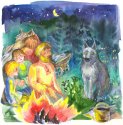 Странники устроились под раскидистым дубом. Дед доставал из своей сумы нехитрые запасы, раскладывая их на холстине, а Ерошка сидел рядом, положив голову на руки, и смотрел на него. Старик, подшучивая да приговаривая, выудил из сумы сначала хлеб, потом сыр, яблоки и даже маленький туесок меда.