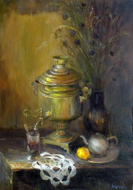 Символом нашей семейной сплоченности всегда был дачный самовар. В будни он поглядывал на нас с высоты буфета, и чай мы пили обычный, из чайника, согретого на керосинке. Зато в выходные дни непременно, в любую погоду, ставили самовар. Главное, разжечь его быстренько, щепочками, а уж потом ставь трубу, появится тяга, и — только шишки подбрасывай, дело пойдет даже под проливным дождем. Если нет дождя, то, конечно, мы все рядом с мамой на лавочке, тесня друг друга, наблюдаем за действом. Самовар начинает потихоньку насвистывать, внутри его блестящего пуза что-то щелкает, дым пушистым шарфиком плывет в соседский сад, а мама, надев очки, читает вслух нашего «дачного» Пушкина. Определить готовность самовара легко: во-первых, он перестает насвистывать, а во-вторых, если щелкнуть пальцами по его раскаленному боку, раздастся глухой звук. Если один раз это услышать, уже никогда не спутаешь, готов или нет самовар. Готов. С Пушкиным отдельная история. Расскажу.